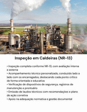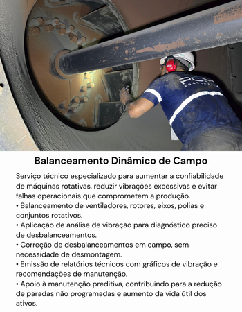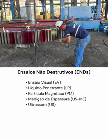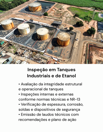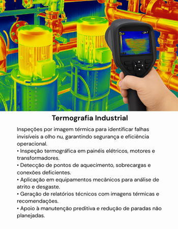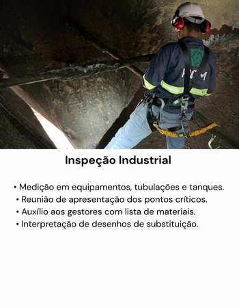 Especializados em inspeções industriais, incluindo ensaios não destrutivos e análise estrutural, também prestamos serviços de manutenção preditiva, PCM e gestão de projetos, além de soluções de alto nível como alinhamento a laser, balanceamento dinâmico e termografia.